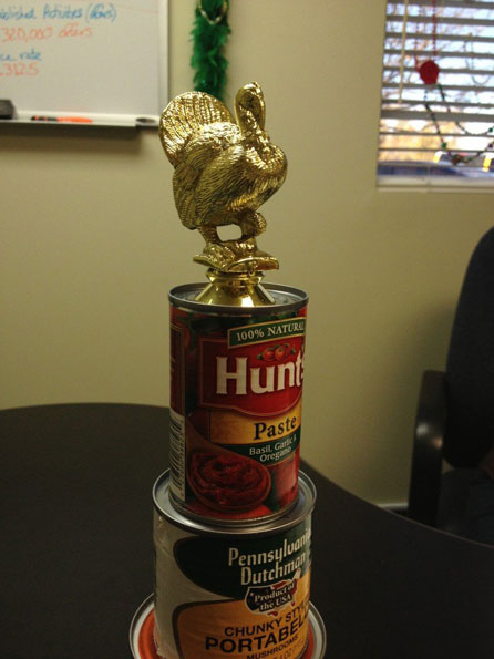 For the second year in a row, that winning team is corporate marketing. We (yes, that's my team) are taking home the Golden Gobbler after donating over 2100 pounds.
